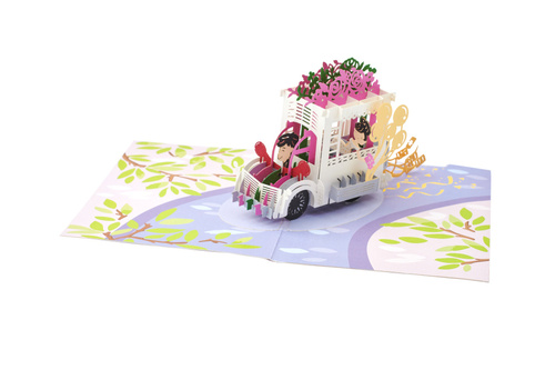 Naše 3D přání " Svatební Automobil" zachycuje vzrušení a radost novomanželů, kteří se vydávají na novou společnou cestu a je dokonalým způsobem, jak pogratulovat novomanželům a učinit jejich výjimečný den ještě nezapomenutelnějším.