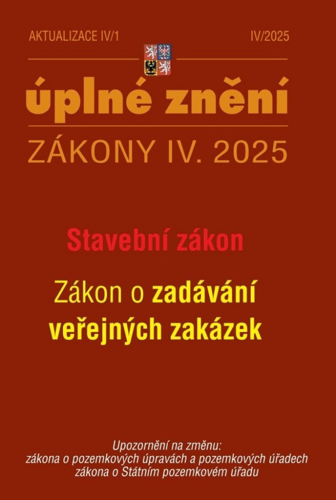 Aktualizace IV/1 2025 – Stavební zákon, o zadávání veřejných zakázek