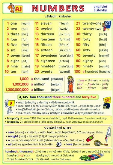 Kompletně zpracovaný přehled anglických číslovek, který pomůže zvládnout gramatiku všem malým i velkým školákům. Obsahuje základní, řadové a násobné číslovky, zlomky, počítání a desetinná čísla. Poutavé provedení s ilustracemi od Petra Kopla.