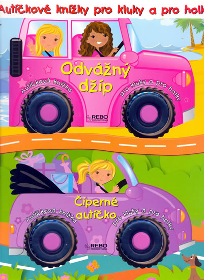 Knížka, nebo hračka? Je to obojí. Krabička obsahuje dvě barevně ilustrované knížky ve tvaru autíček s pohyblivými plastovými kolečky. Knížka vypráví jednoduchý rýmovaný příběh o odvážném džípu nebo čiperném autíčku. Obě knížky i krabice, v níž jsou uloženy, jsou opatřeny zapínáním na suchý zip.