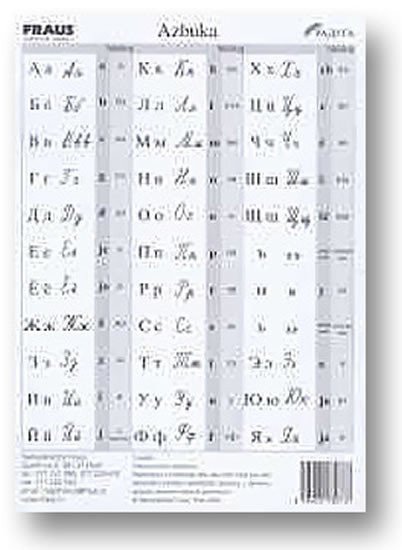 Kartička A5 poslouží jako praktická, názorná učební pomůcka pro ty, kteří začínají se studiem ruského jazyka. Jedna strana zobrazuje tištěnou a psanou formu písmen azbuky, druhá strana je stručným praktickým přehledem základních gramatických jevů.