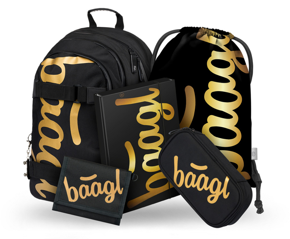 BAAGL 5 SET Skate Gold: batoh, penál, sáček, desky, peněženka