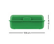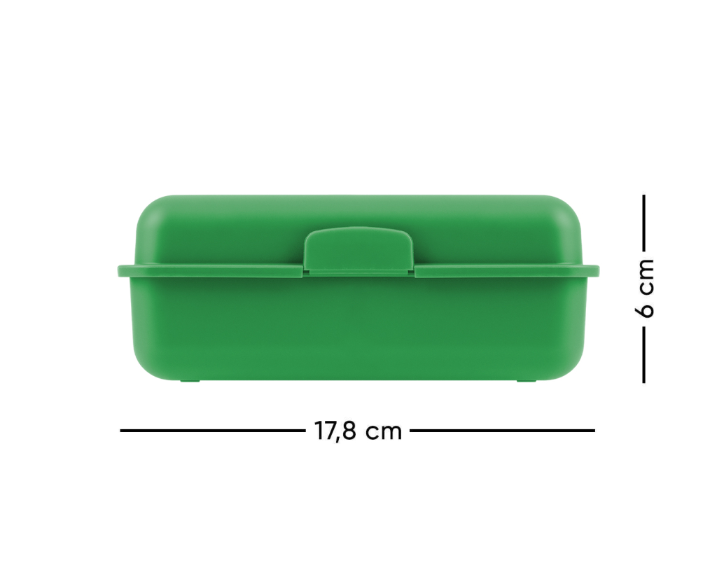 • Plastový box na svačinu v zelené barvě.• Box má uzavírání na jeden zámek a obsahuje dělicí přepážku.