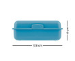 • Plastový box na svačinu v modré barvě.• Box má uzavírání na jeden zámek a obsahuje dělicí přepážku.