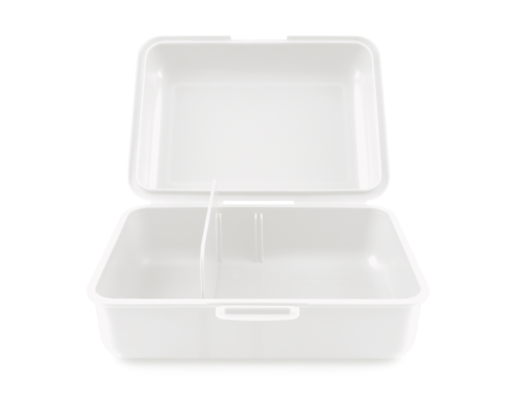 • Plastový box na svačinu.• Box má uzavírání na jeden zámek a obsahuje dělicí přepážku.