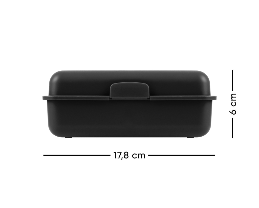• Plastový box na svačinu v černé barvě.• Box má uzavírání na jeden zámek a dělicí přepážku.