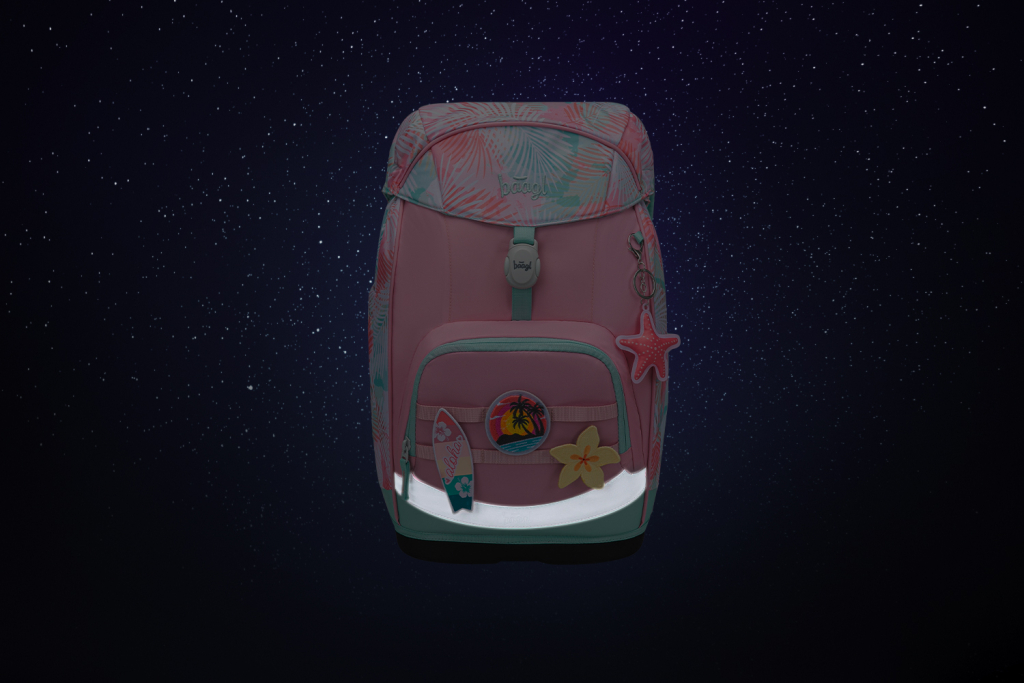 • Batoh je vyroben z recyklovaného, voděodolného materiálu a doplněn o výrazné reflexní prvky pro bezpečnost dítěte za zhoršené viditelnosti.