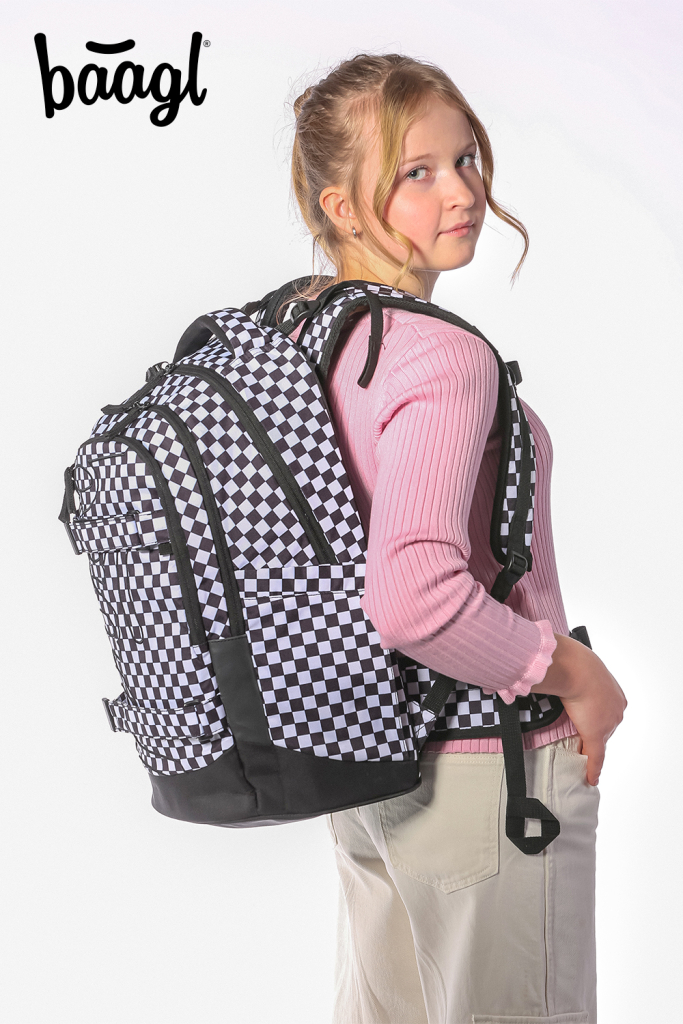 • Postranní kapsy, ideální například na tritanové láhve BAAGL, jsou vyrobeny z pevného materiálu sladěného s designem batohu.
