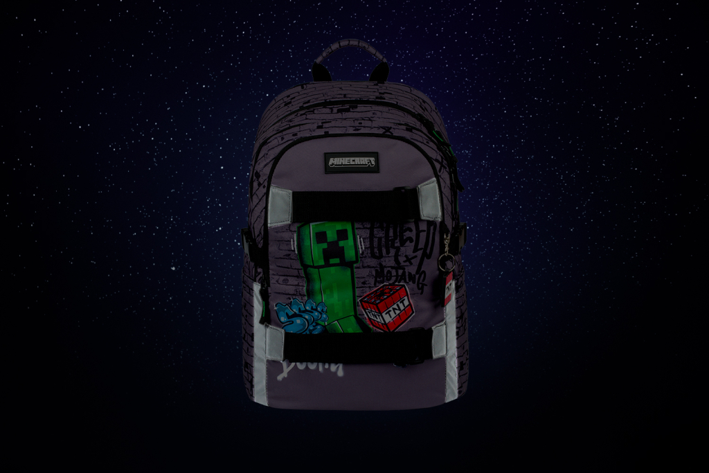 "ŠKOLNÍ BATOH SKATE MINECRAFT TNT• Populární model Skate, s hmotností nepřesahující 900 g a popruhy na uchycení skateboardu, je ideální pro žáky již od třetí třídy ZŠ.