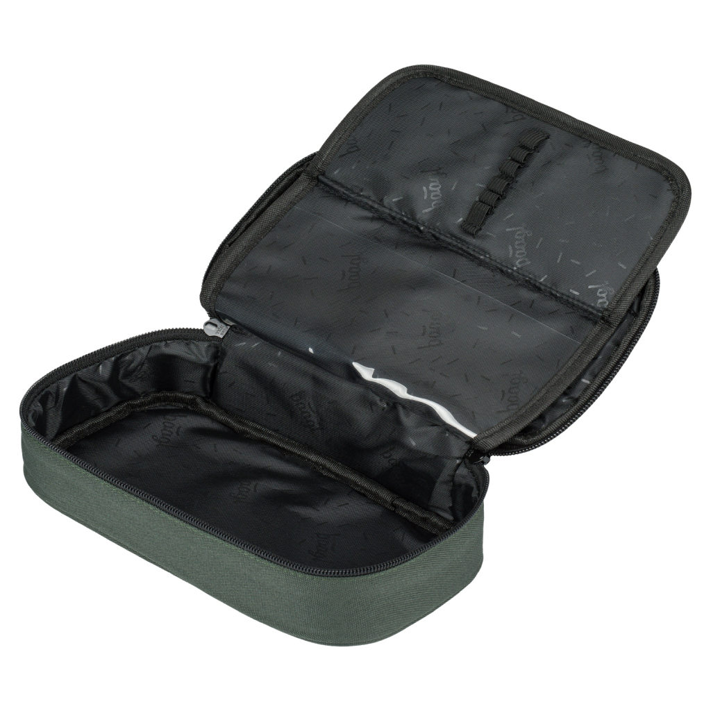 • Kompaktní penál na zip s prostornou hlavní komorou a dvojitou výklopnou chlopní nabízí dostatek prostoru pro psací potřeby i drobnosti.