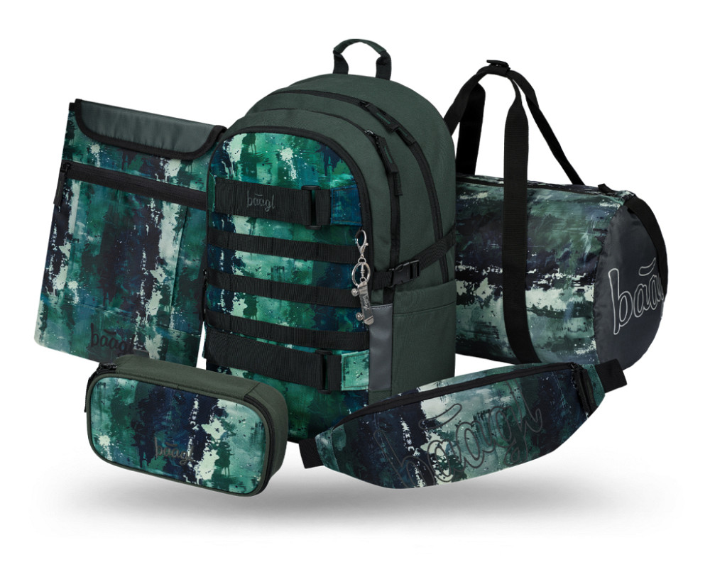 BAAGL SET 5 Skate Forest: batoh, penál, sportovní taška, ledvinka, obal na notebook