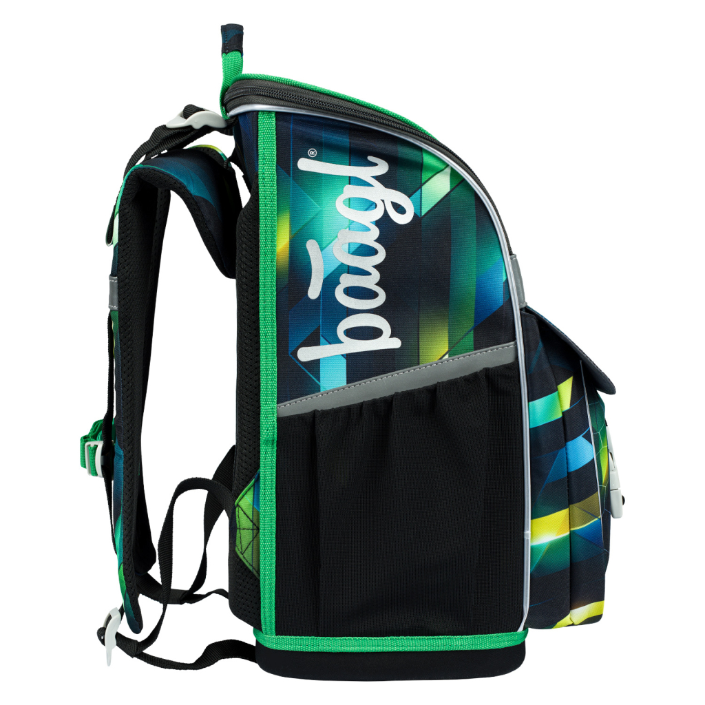 • Uvnitř aktovky je průhledná kapsa na rozvrh a vnitřní organizér umožňující rovnoměrné rozložení hmotnosti, doplněný gumičkou pro fixaci.