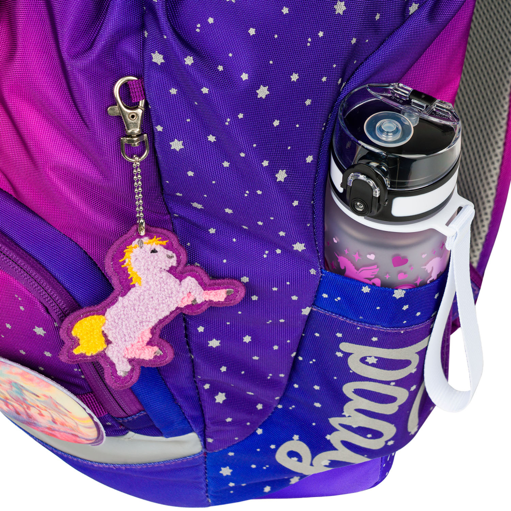 • Jednokomorové vnitřní uspořádání s kapsou a gumičkou pro uchycení desek na zádové straně slouží ke snadné organizaci všech školních pomůcek.