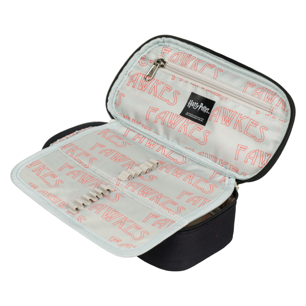 • Kompaktní penál na zip s prostornou hlavní komorou a dvojitou výklopnou chlopní nabízí dostatek prostoru pro psací potřeby i drobnosti.• Součástí penálu je také vnitřní kapsa a okénko na rozvrh hodin.