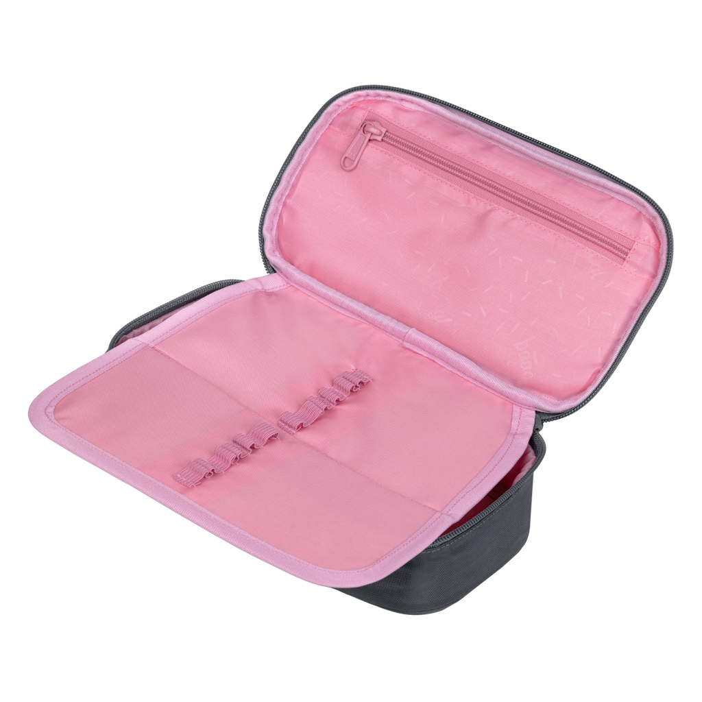 • Kompaktní penál na zip s prostornou hlavní komorou a dvojitou výklopnou chlopní nabízí dostatek prostoru pro psací potřeby i drobnosti.• Součástí penálu je také vnitřní kapsa a okénko na rozvrh hodin.