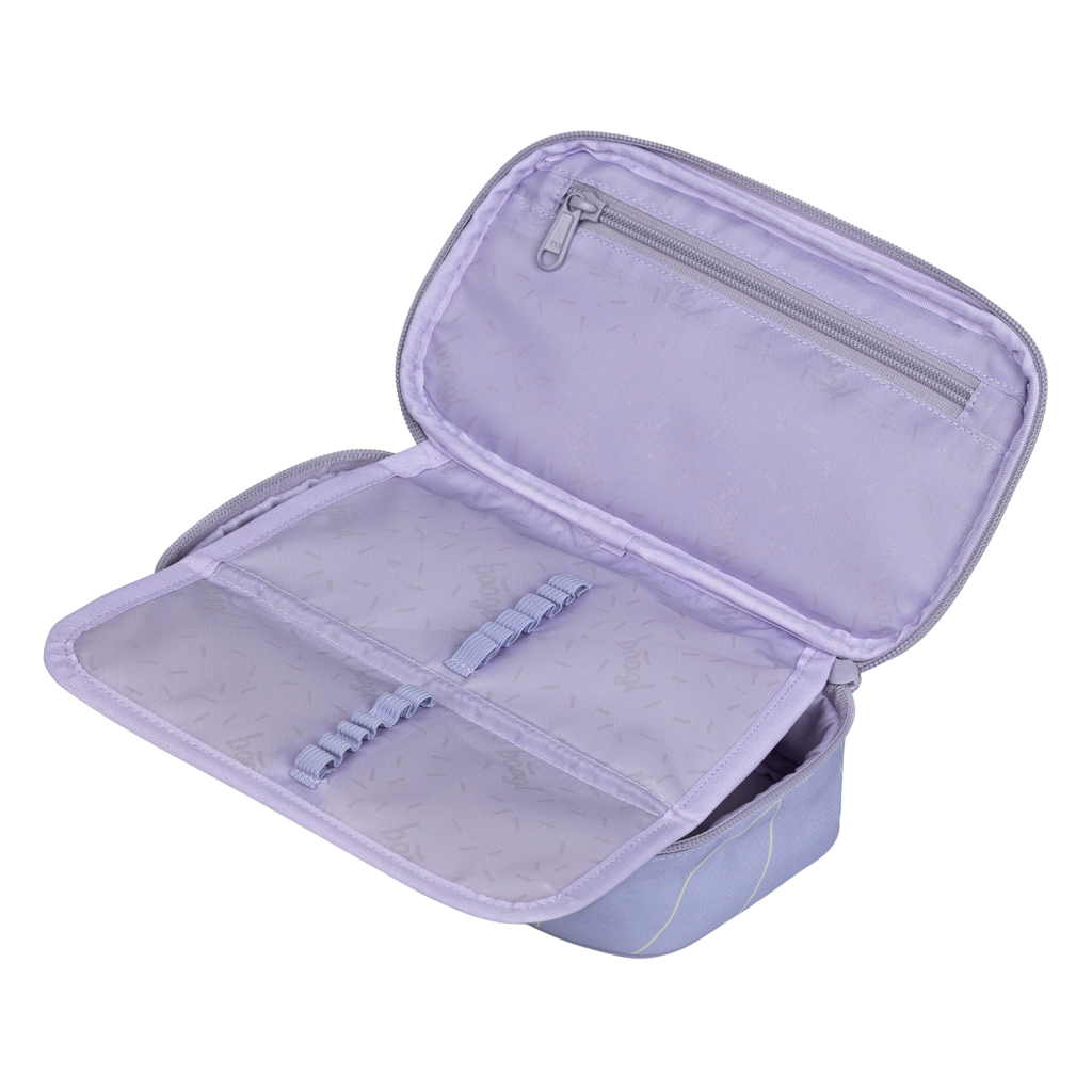 • Kompaktní penál na zip s prostornou hlavní komorou a dvojitou výklopnou chlopní nabízí dostatek prostoru pro psací potřeby i drobnosti.• Součástí penálu je také vnitřní kapsa a okénko na rozvrh hodin.