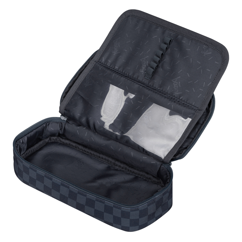 • Kompaktní penál na zip s prostornou hlavní komorou a dvojitou výklopnou chlopní nabízí dostatek prostoru pro psací potřeby i drobnosti.• Součástí penálu je také vnitřní kapsa a okénko na rozvrh hodin.