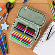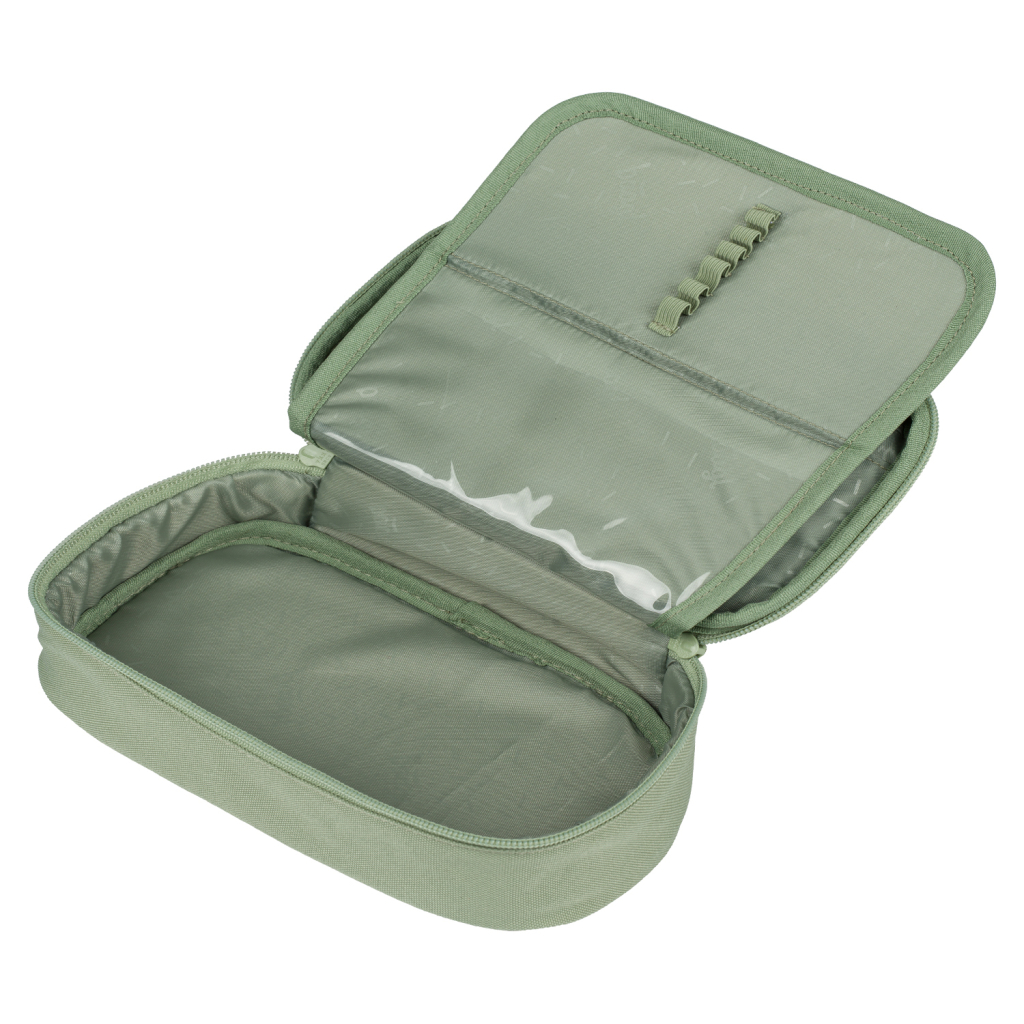 • Kompaktní penál na zip s prostornou hlavní komorou a dvojitou výklopnou chlopní nabízí dostatek prostoru pro psací potřeby i drobnosti.• Součástí penálu je také vnitřní kapsa a okénko na rozvrh hodin.