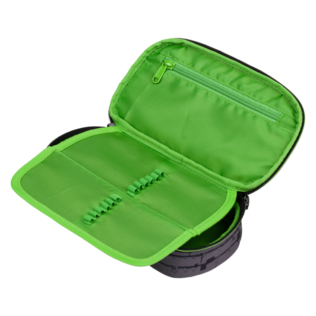 • Kompaktní penál na zip s prostornou hlavní komorou a dvojitou výklopnou chlopní nabízí dostatek prostoru pro psací potřeby i drobnosti.• Součástí penálu je také vnitřní kapsa a okénko na rozvrh hodin.