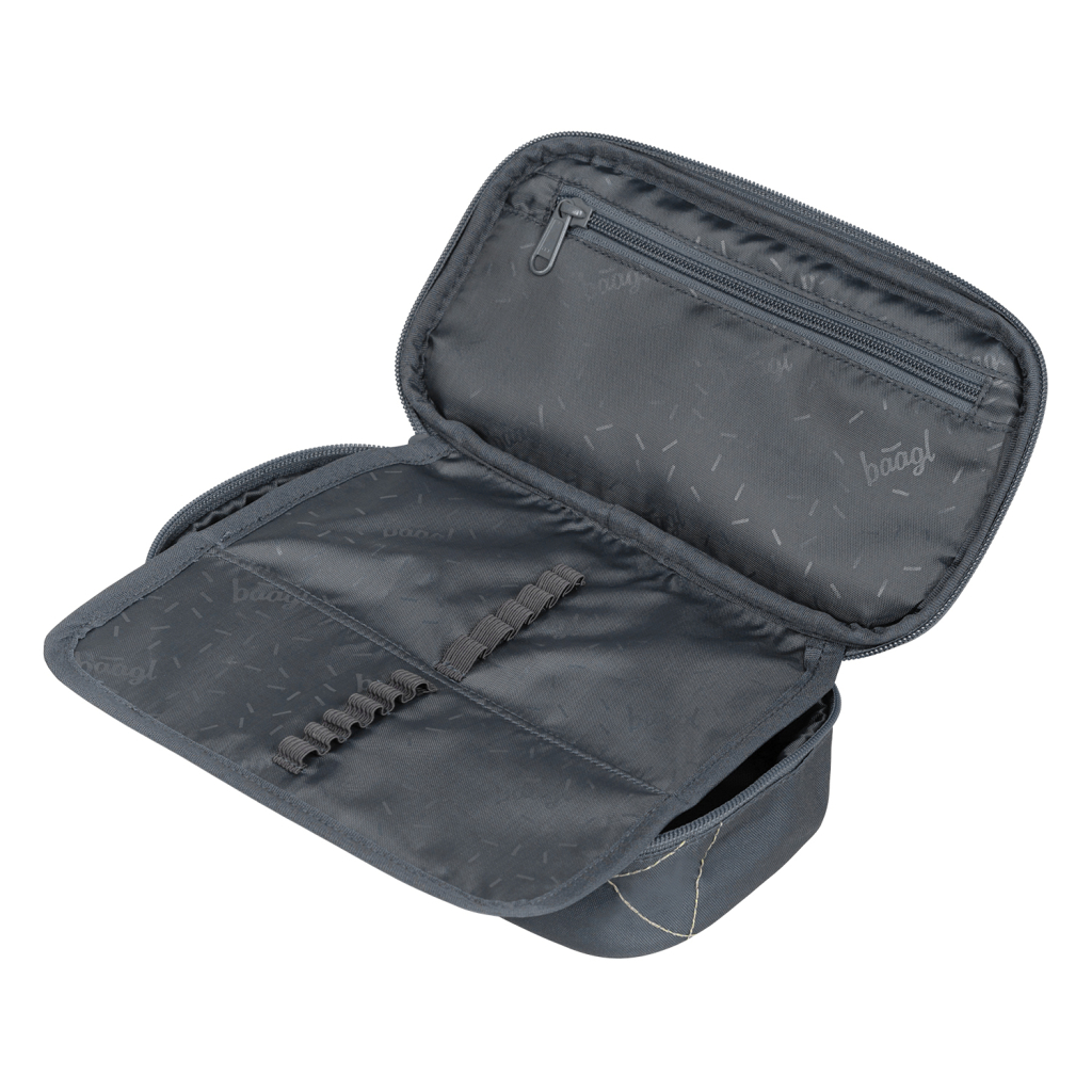 • Kompaktní penál na zip s prostornou hlavní komorou a dvojitou výklopnou chlopní nabízí dostatek prostoru pro psací potřeby i drobnosti.• Součástí penálu je také vnitřní kapsa a okénko na rozvrh hodin.