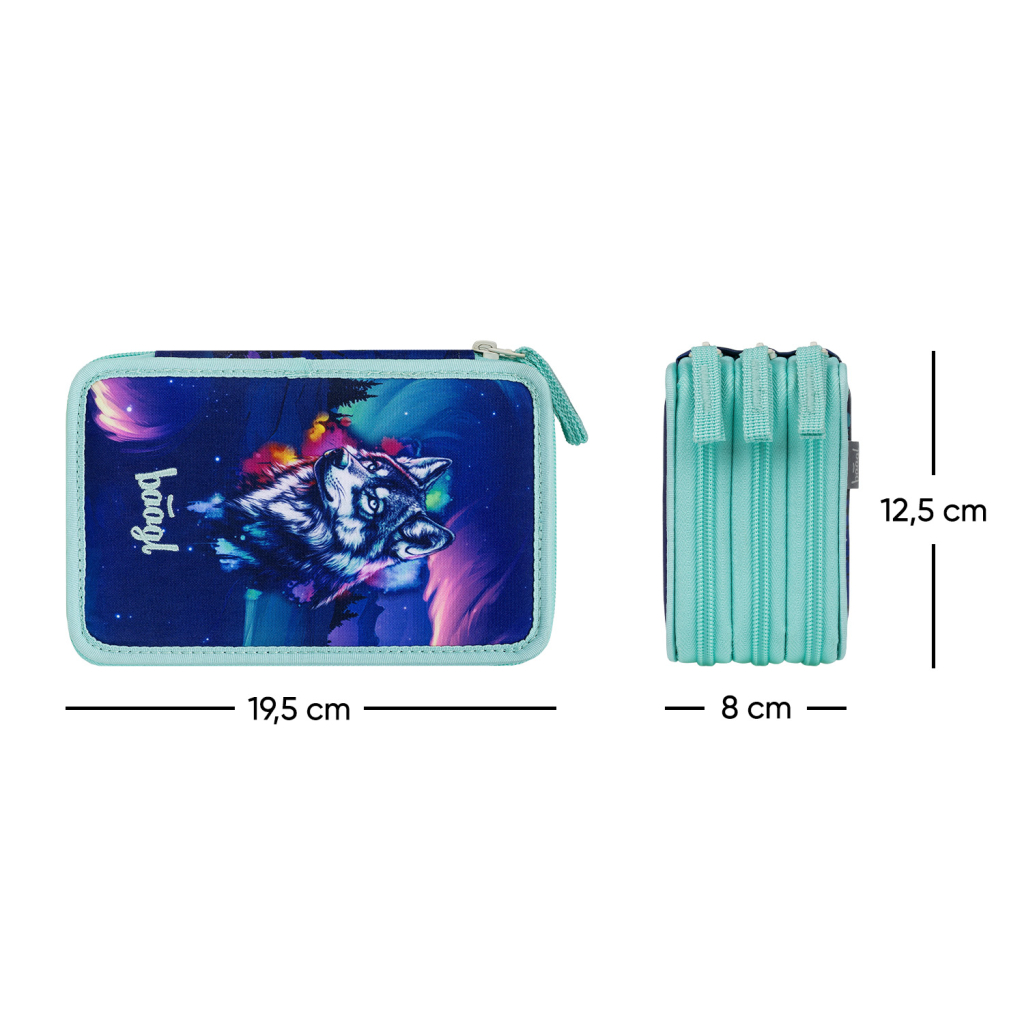 • Extra prostorný třípatrový penál na všechny psací potřeby.• Gumičky přizpůsobené i silným pastelkám a fixám.