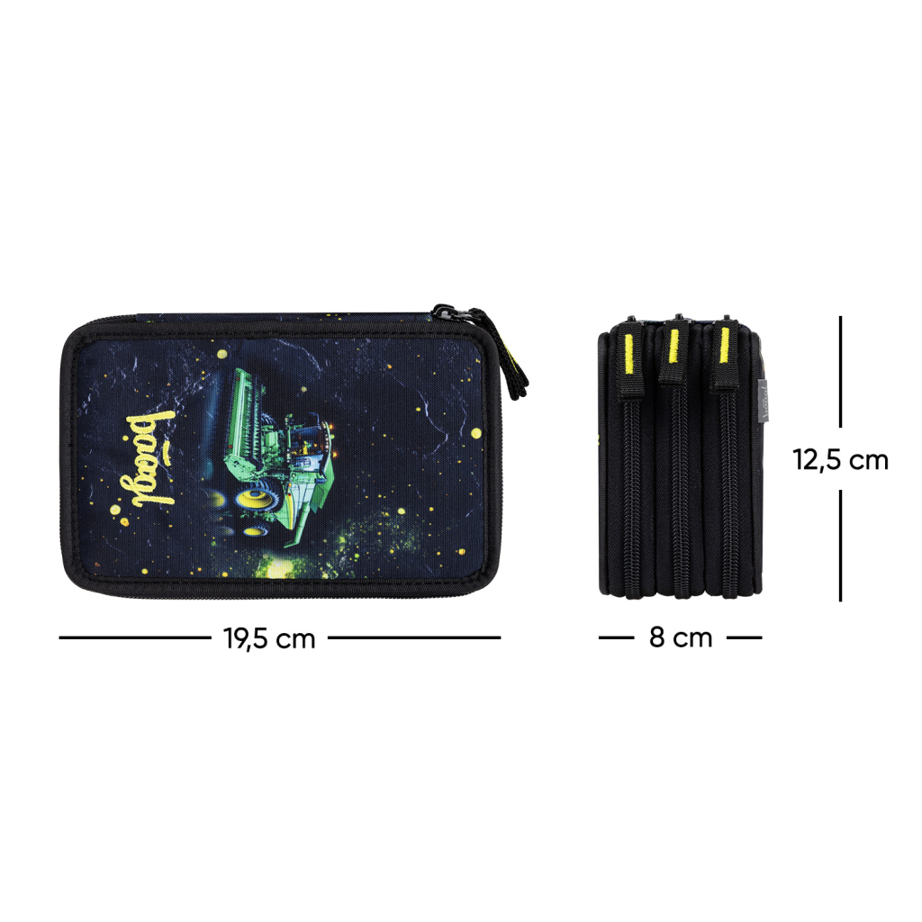 • Extra prostorný třípatrový penál na všechny psací potřeby.• Gumičky přizpůsobené i silným pastelkám a fixám.
