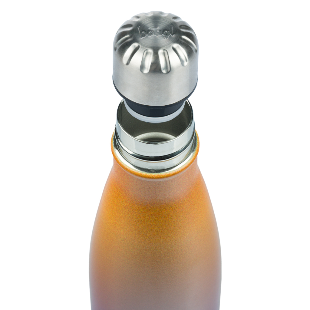 • Stylová láhev s kovovým víčkem a objemem 500 ml nejen skvěle vypadá, ale je i velmi praktická. Horký nápoj udrží teplý až 12 hodin, zatímco studené nápoje zůstanou osvěžující až 24 hodin.