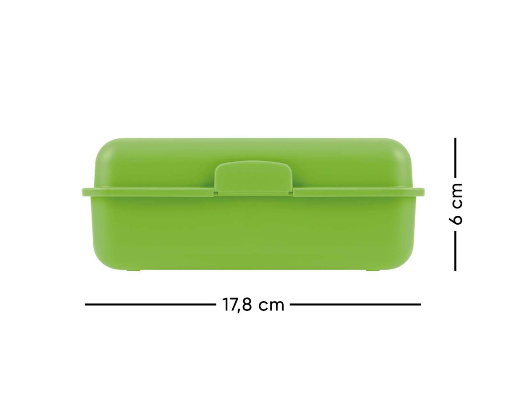 • Plastový box na svačinu v zelené barvě.• Box má uzavírání na jeden zámek a dělicí přepážku.