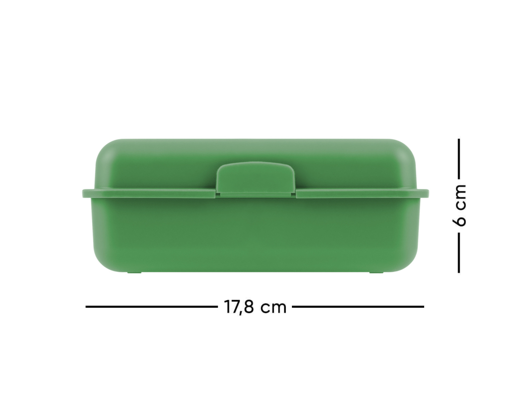 • Plastový box na svačinu v zelené barvě• Box má uzavírání na jeden zámek a dělicí přepážku.