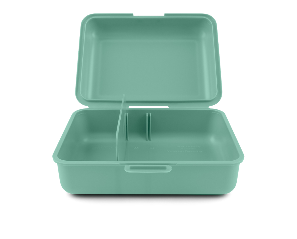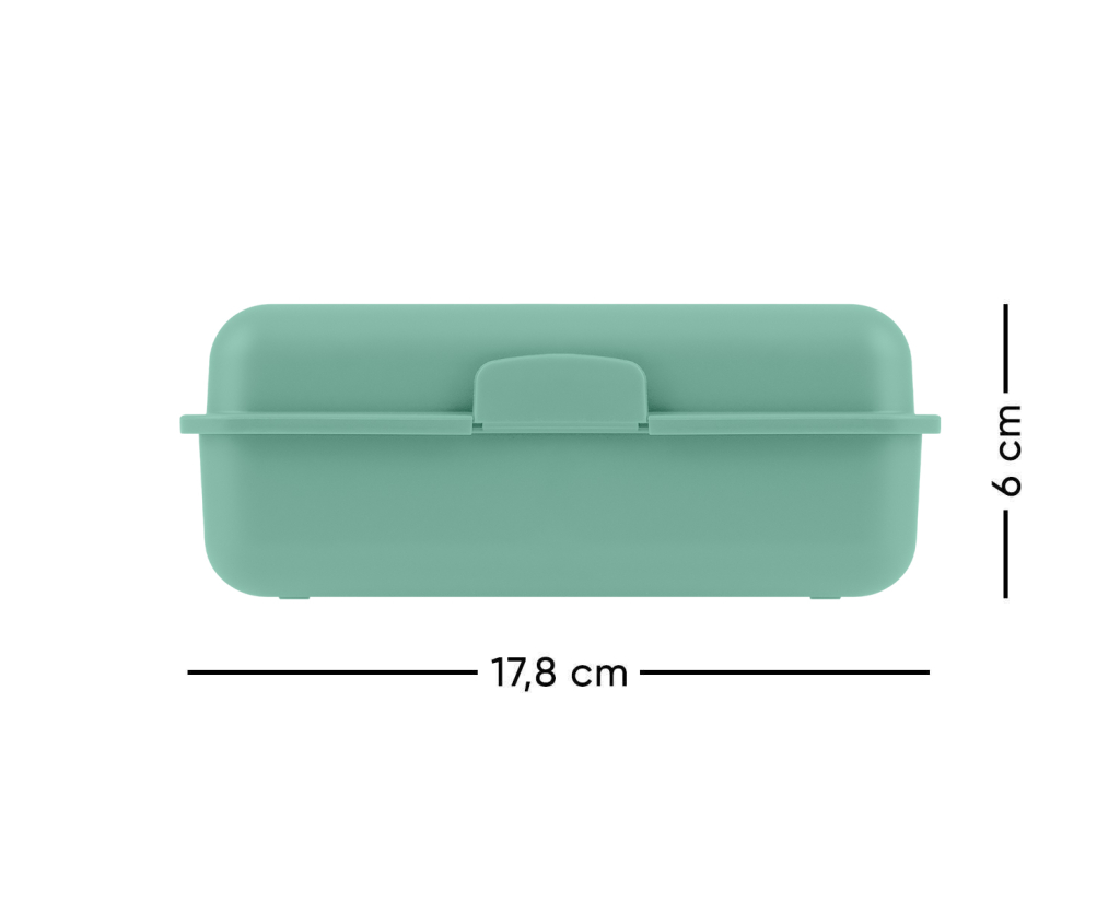 • Plastový box na svačinu v zelené barvě.• Box má uzavírání na jeden zámek a dělicí přepážku.