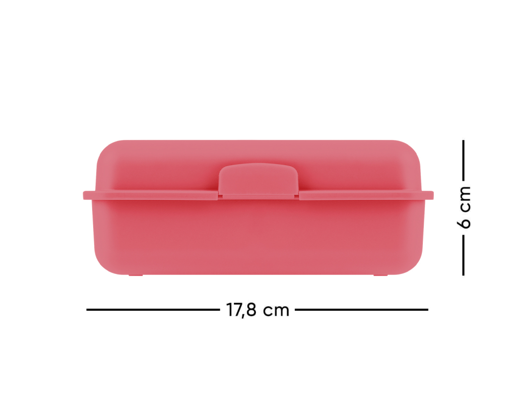 • Plastový box na svačinu v růžové barvě.• Box má uzavírání na jeden zámek a dělicí přepážku.