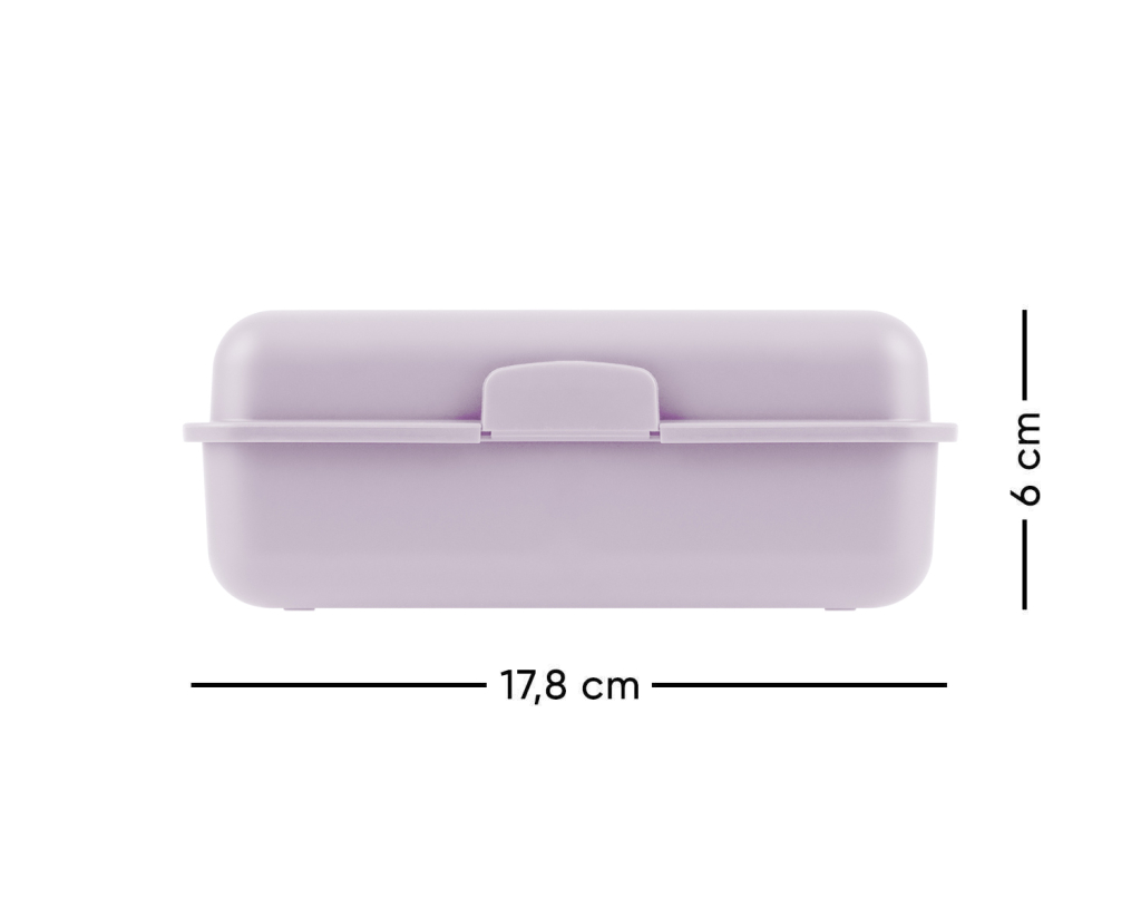 • Plastový box na svačinu ve fialové barvě• Box má uzavírání na jeden zámek a dělicí přepážku.