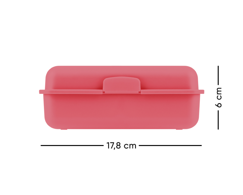 • Plastový box na svačinu v růžové barvě.• Box má uzavírání na jeden zámek a dělicí přepážku.