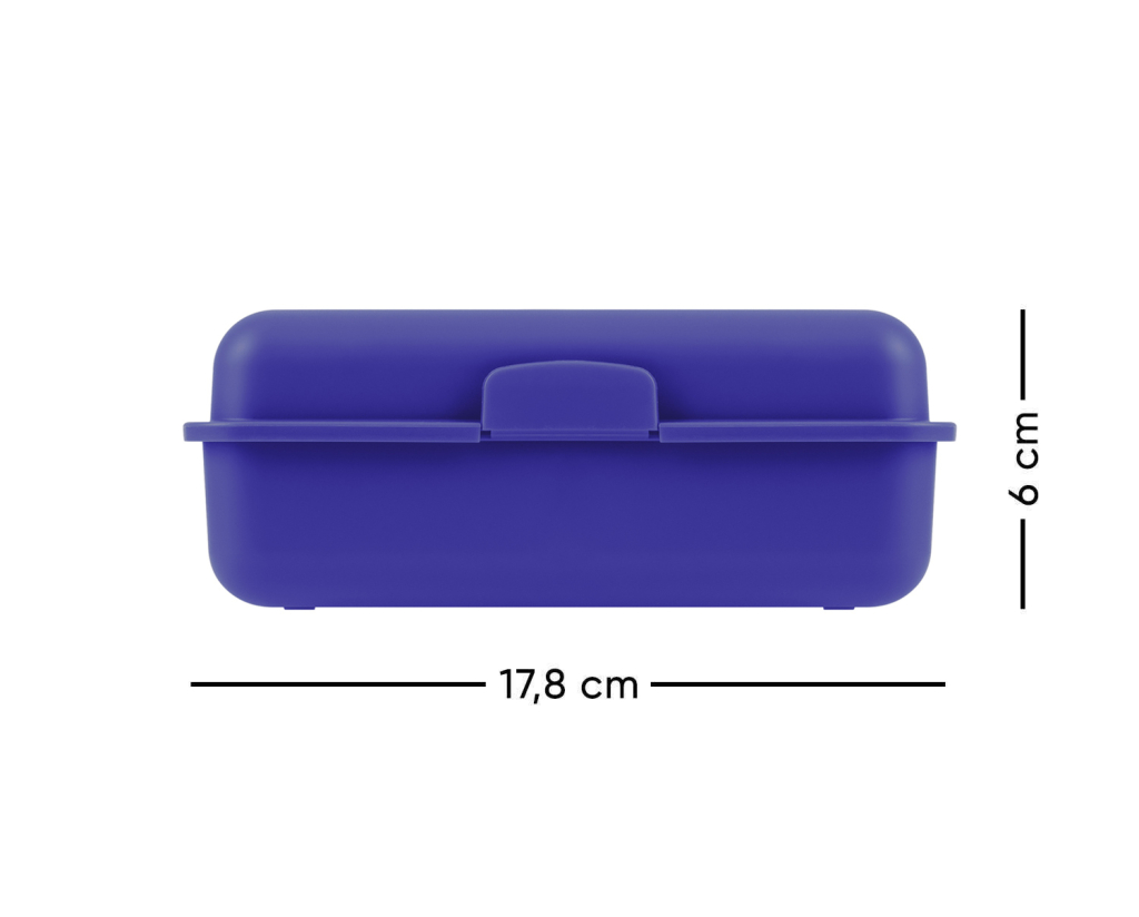 • Plastový box na svačinu v modré barvě• Box má uzavírání na jeden zámek a dělicí přepážku.