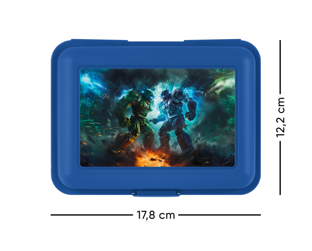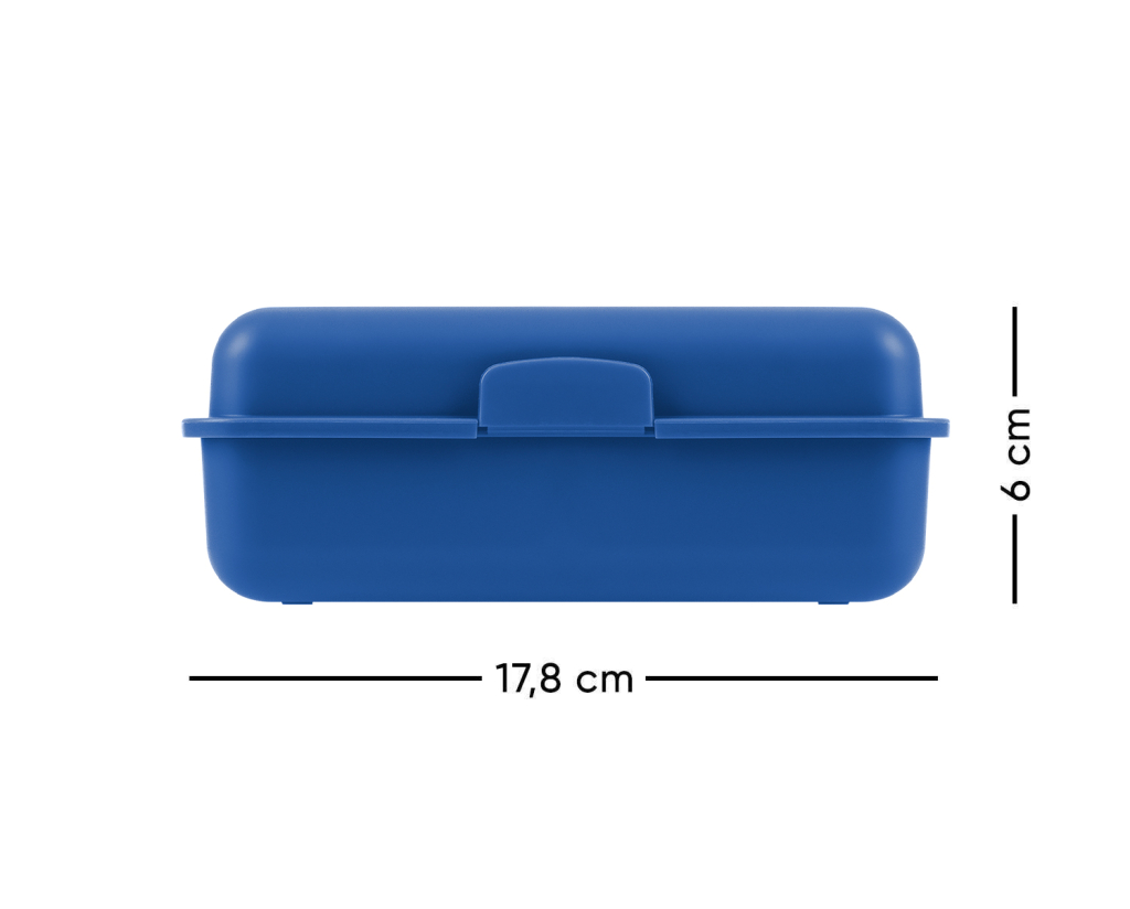• Plastový box na svačinu v modré barvě.• Box má uzavírání na jeden zámek a dělicí přepážku.