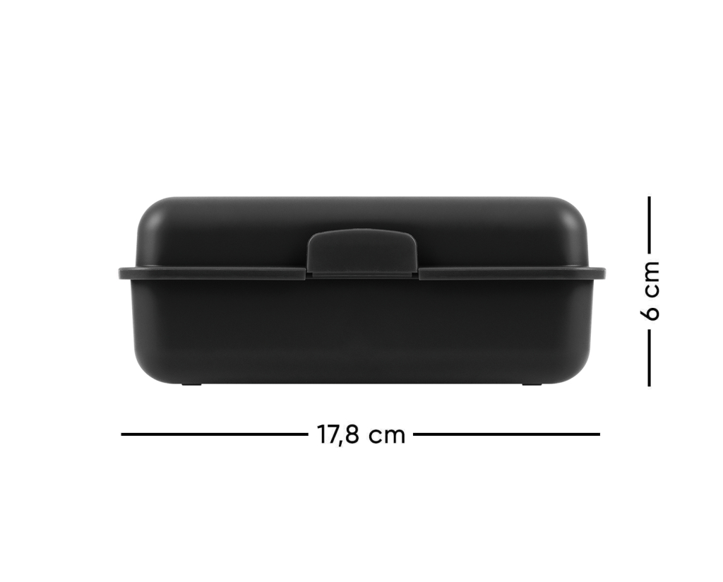 • Plastový box na svačinu v černé barvě.• Box má uzavírání na jeden zámek a dělicí přepážku.