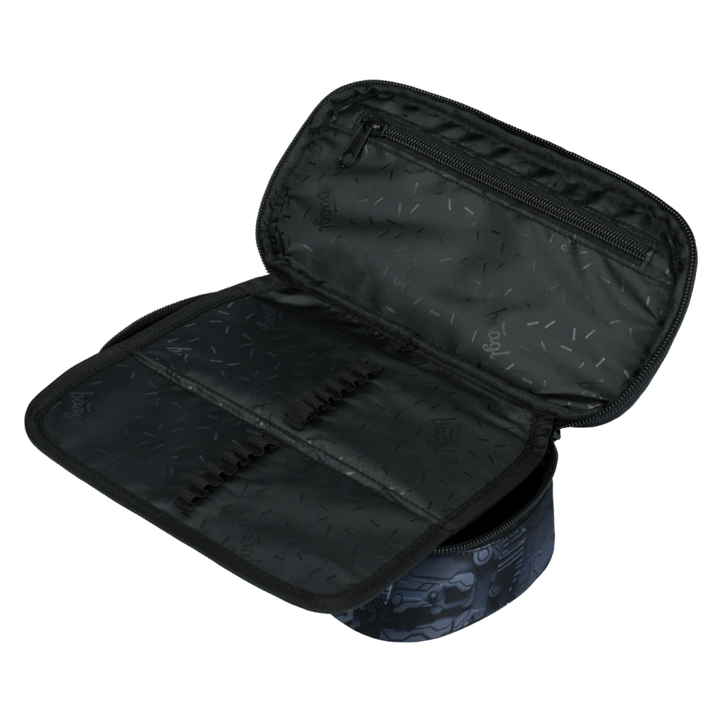 • Pevný školní penál s výklopnou vnitřní přepážkou.• Vnitřní kapsa na zip a kapsa na rozvrh.