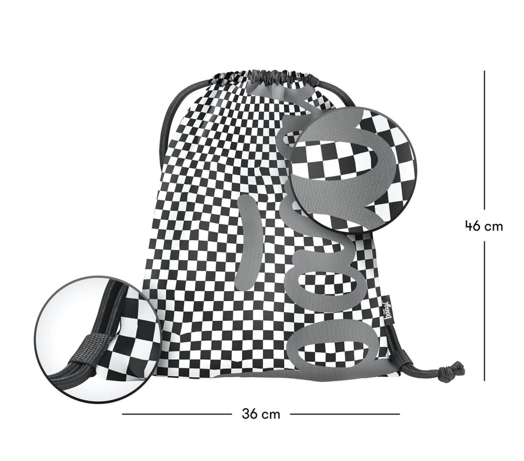• Sáček na cvičky nebo přezůvky s logem BAAGL, které ve tmě svítí.• Sáček je vyroben z pevného omyvatelného materiálu. • Zdrhování pomocí pevných tkanic, které zároveň umožňují nošení na zádech.