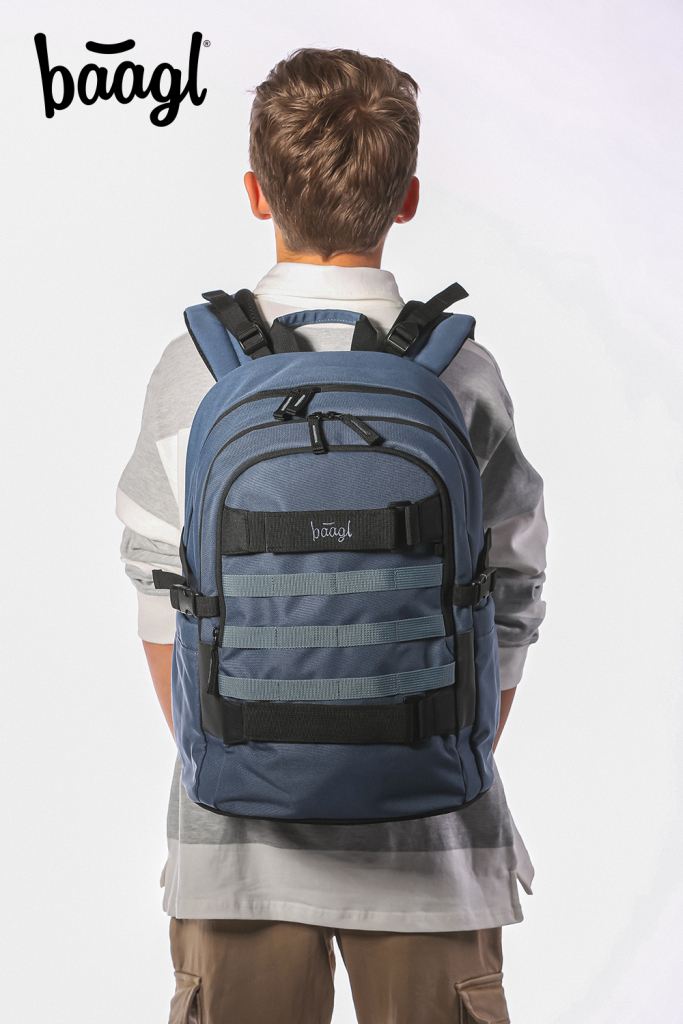 • Postranní kapsy, ideální například na tritanové láhve BAAGL, jsou vyrobeny z pevného materiálu sladěného s designem batohu.
