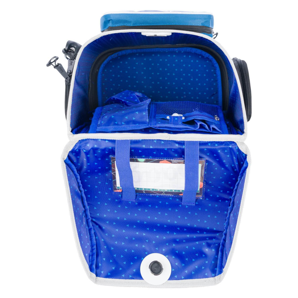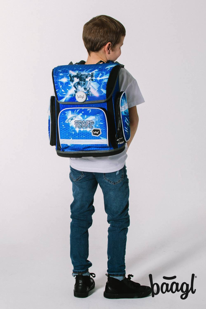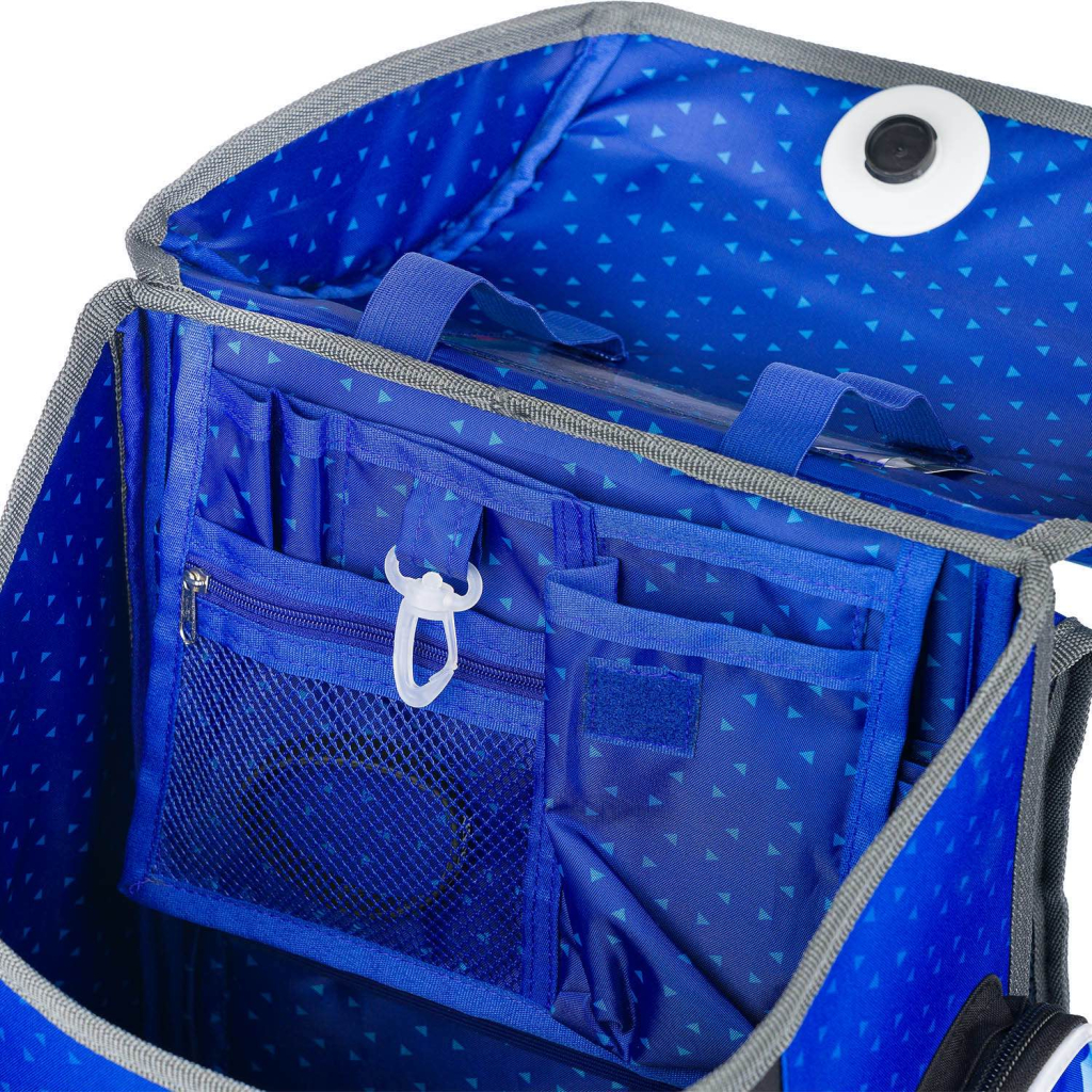 • Uvnitř aktovky je průhledná kapsa s rozvrhem a vnitřní organizér umožňující rovnoměrné rozložení hmotnosti.