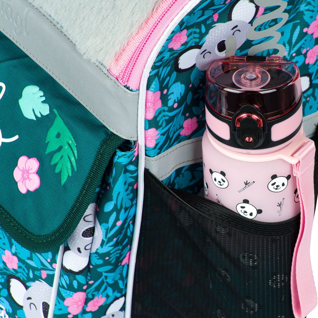 • Boční kapsy z pevné síťoviny, které jsou vhodné pro jednu z našich láhví na pití.