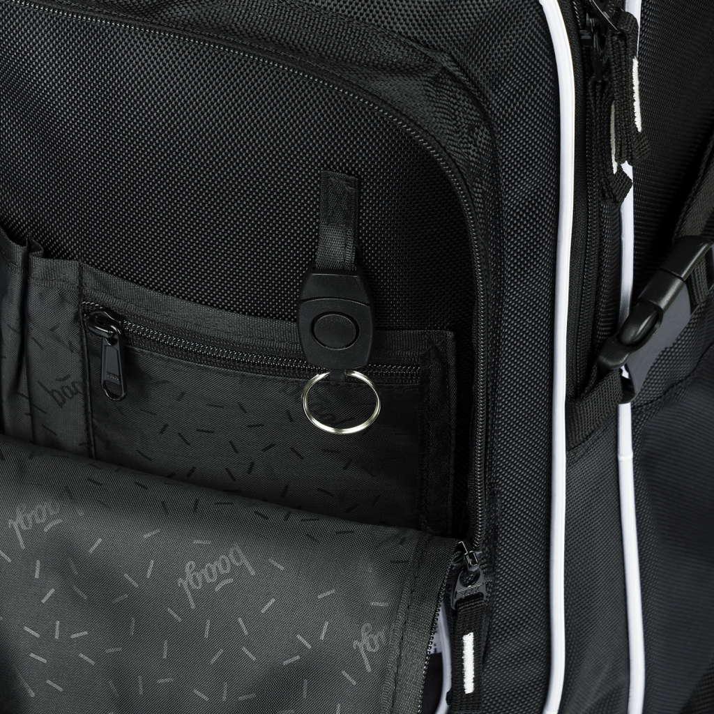 • Přední komora batohu obsahuje praktický organizér a také poutko s karabinou na zavěšení klíčů. Tuto karabinu je možné odepnout a používat samostatně.