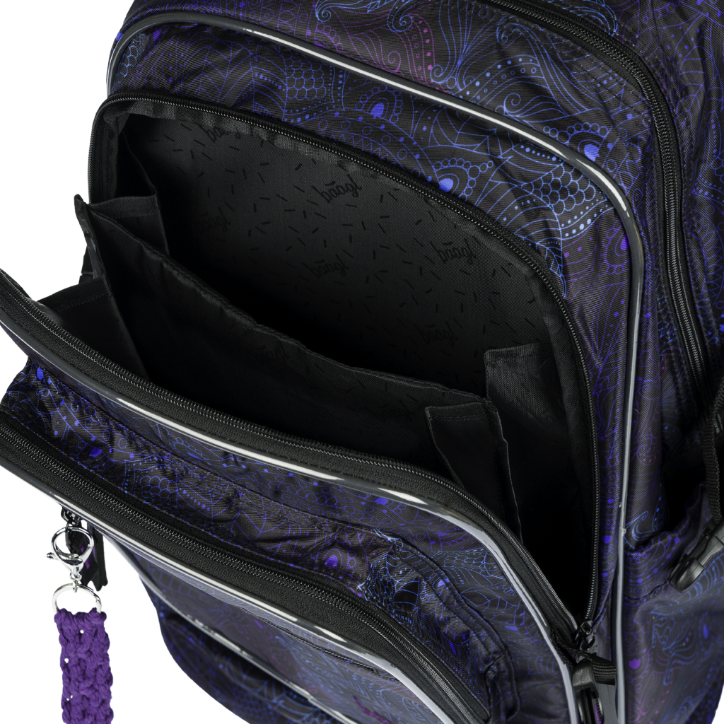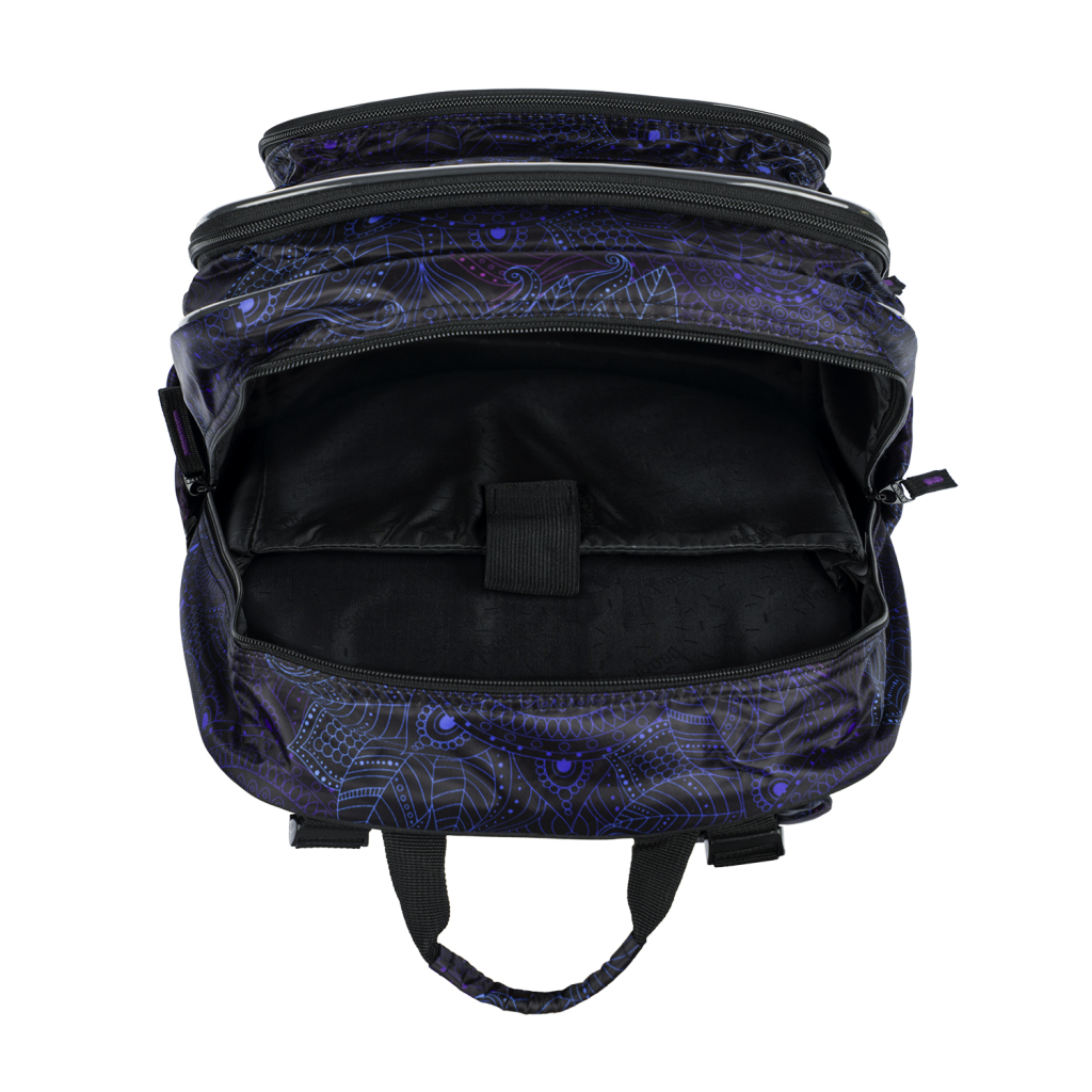 • Tři samostatně uzavíratelné komory s vnitřním organizérem a kapsou na 15palcový notebook či tablet. Tento vnitřní organizér umožňuje rovnoměrné rozložení hmotnosti.