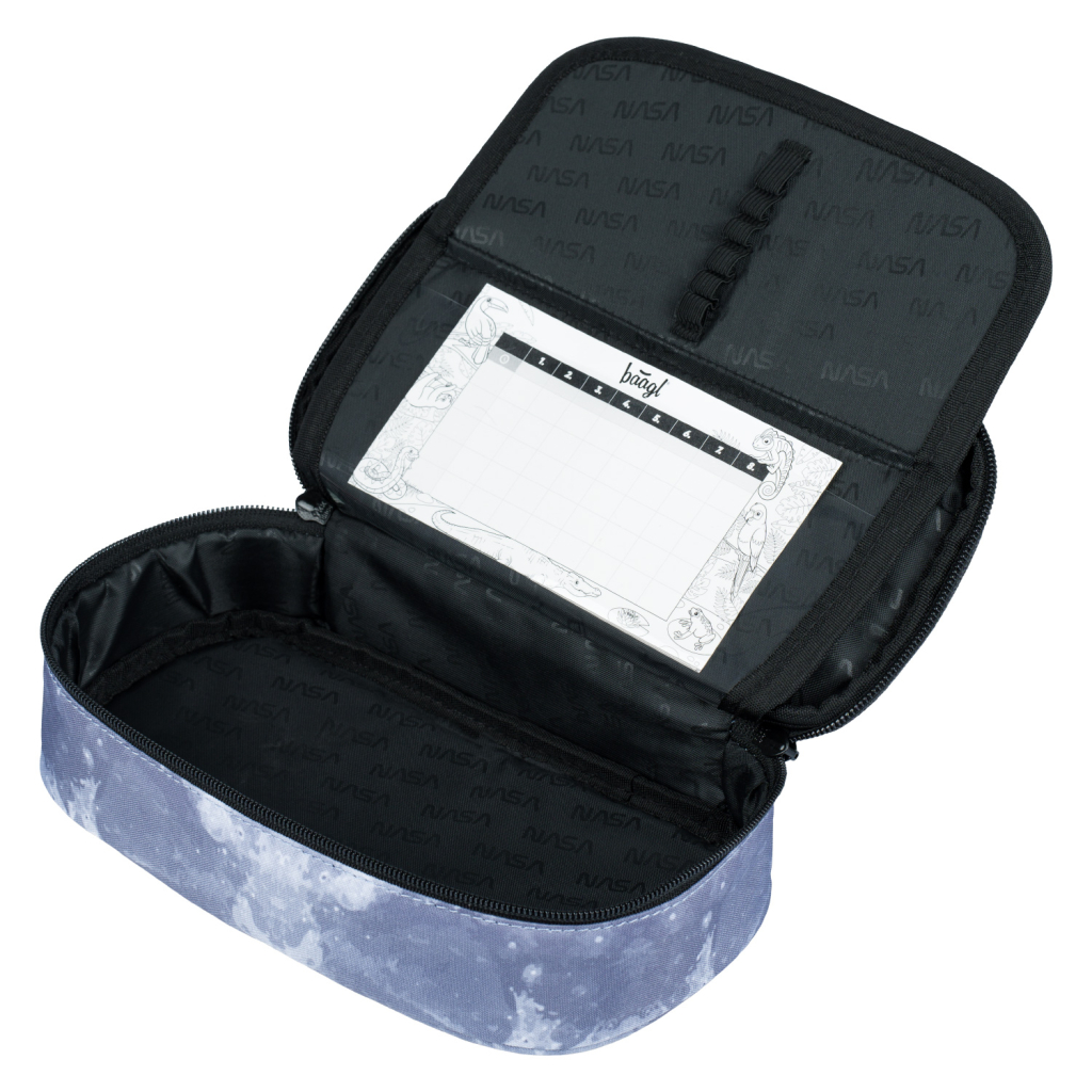 • Pevný školní penál s výklopnou vnitřní přepážkou.• Vnitřní kapsa na zip a kapsa na rozvrh.