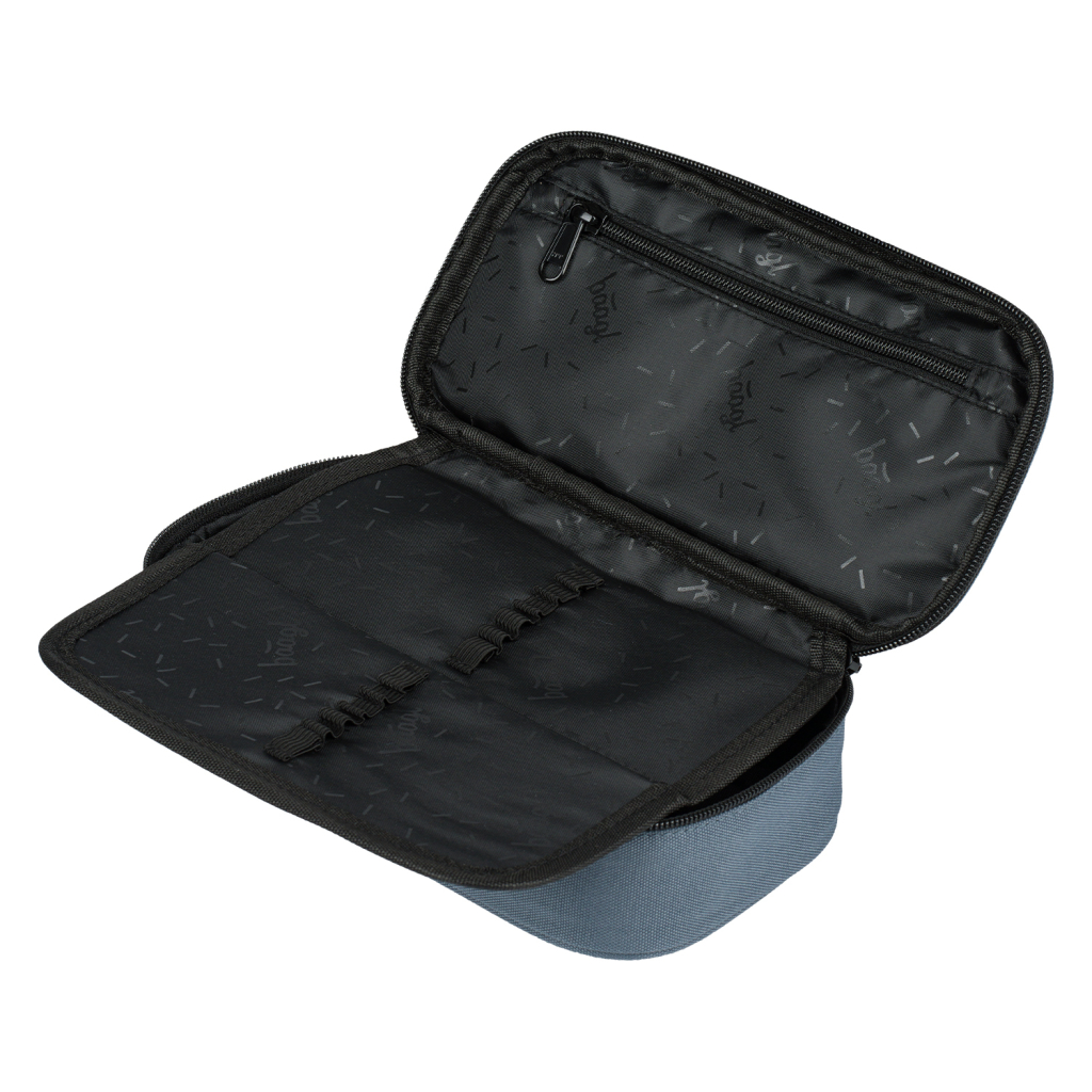 • Kompaktní penál na zip s prostornou hlavní komorou a dvojitou výklopnou chlopní nabízí dostatek prostoru pro psací potřeby i drobnosti.• Součástí penálu je také vnitřní kapsa a okénko na rozvrh hodin.