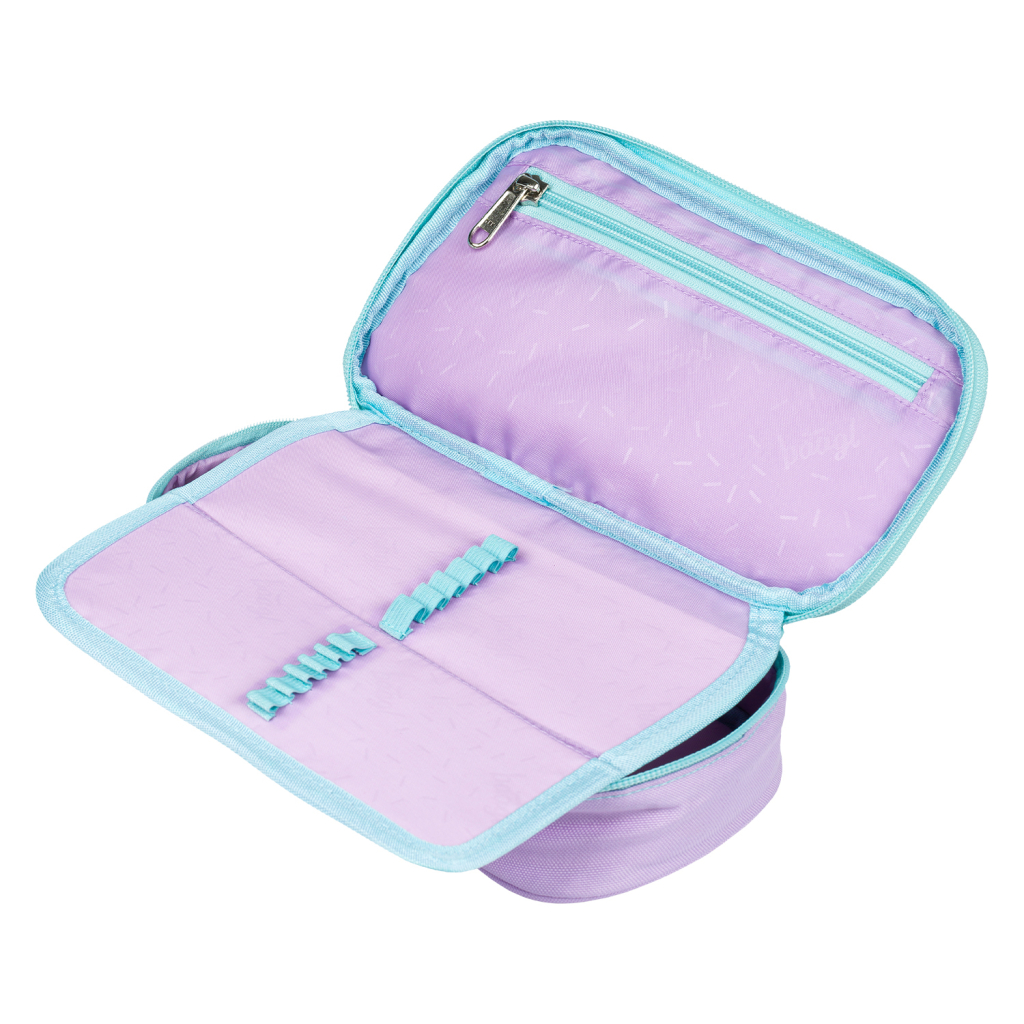 • Kompaktní penál na zip s prostornou hlavní komorou a dvojitou výklopnou chlopní nabízí dostatek prostoru pro psací potřeby i drobnosti.• Součástí penálu je také vnitřní kapsa a okénko na rozvrh hodin.