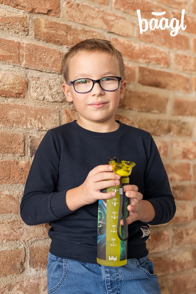 Ve školní výbavě nesmí chybět pořádná láhev na pití – a láhev od BAAGLu se hodí jak do školy, tak na výlety nebo do sportovního kroužku.Uzamykatelné víčko nepropustí ani kapku nápoje a zaručuje jednoduché a intuitivní používání. K láhvi je připevněné také poutko pro pohodlné nošení v ruce.