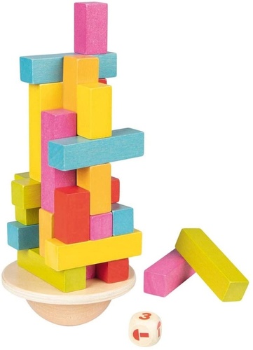 Tančící věž je dovednostní hra pro celou rodinu. Základní deska je připevněna na pevnou polokouli, což značně komplikuje stohování barevných dřevěných kostek. Vyrobeno ze dřeva, rozvíjí jemnou motoriku, šikovnost a trénuje trpělivost. Hraj sám, aby ses zdokonalil nebo s dalšími hráči - rodiči, prarodiči, kamarády, aby ses pobavil a poučil. Chce to pevnou ruku a skvělou taktiku.