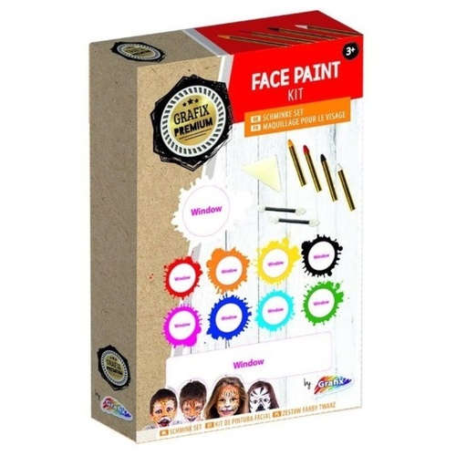 Barvy na obličej 16 ks- balení obsahuje 8 barev na obličej, 4 tužky na obličej, 2 houbičky a 2 aplikátory.