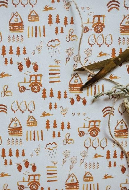 Be Nice EKO celoroční balicí papír s motivy venkova na dárky pro děti. Originální motivy vytvořila česká ilustrátorka Bára z Nikolajky.